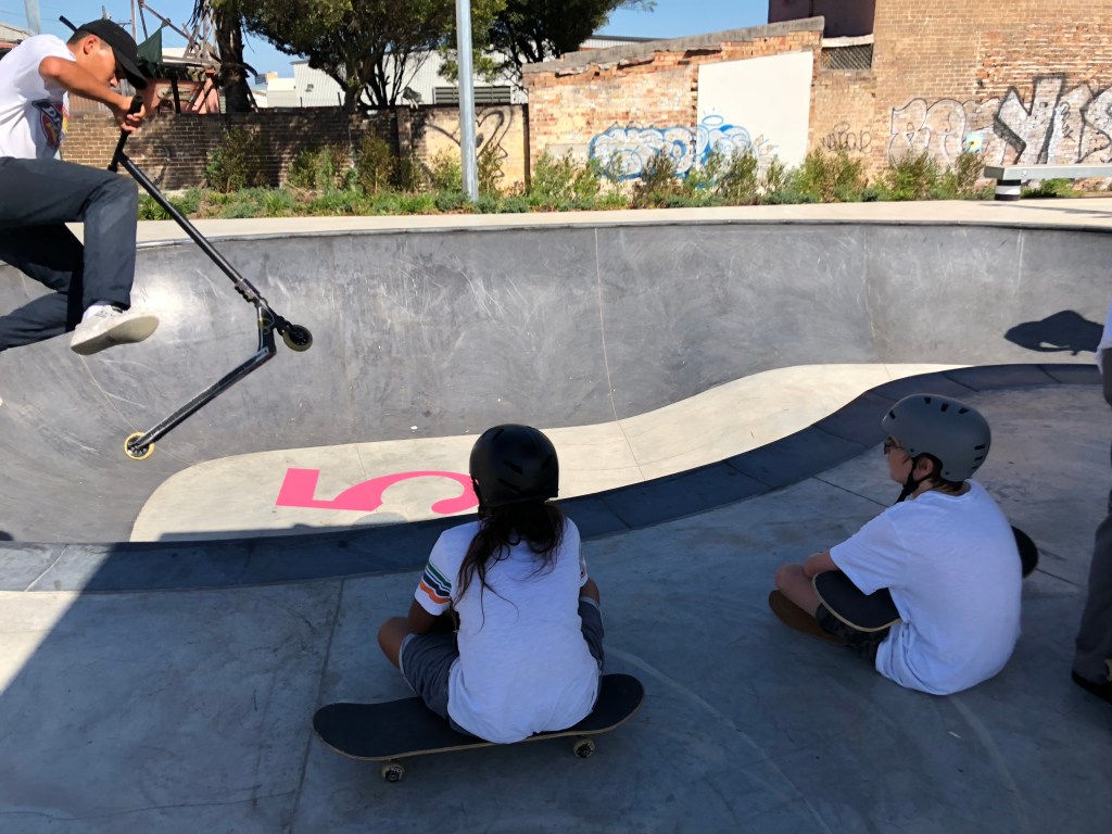 This issue is all the more difficult if those young males happen to be poor. You can pick up a decent scooter or skateboard for a couple of hundred bucks, reconstruct it piece by piece, from the ball-bearings right through to the deck as you get more money. The skateparks and the streets are free to ride in. No costs, other than skin and bones. It’s somewhere to cut loose and burn time away. A place where they can feel good and be free. I don’t want to be over-romantic. There’s low-level pot smoking, drinking, some truly offensive language, hints of gang bullying, and stories of younger kids being inculcated by older ones into selling vapes at school for profit. But that delinquent element only reinforces my impression that skateboarding and all it offers – the good and bad, the graceful and ugly – is tied up deeply with issues of class as well as gender. A lot of these boys have nothing but the parks, the streets and their boards to live for.
