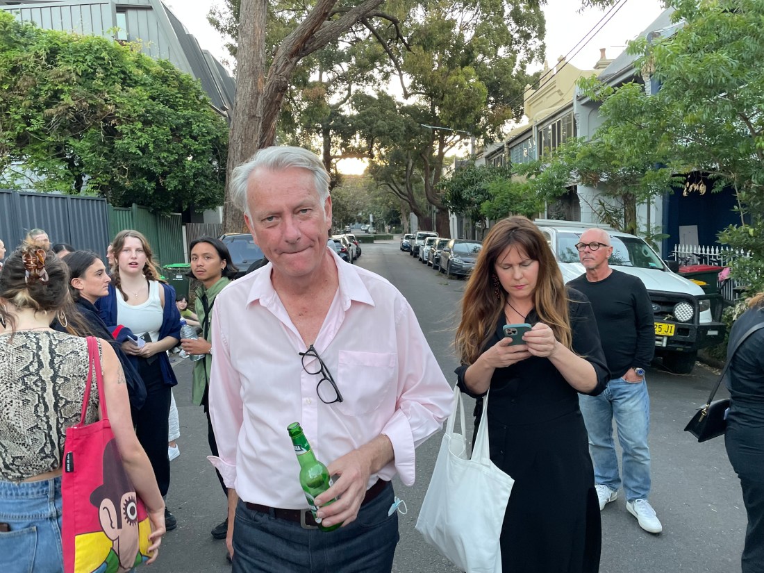 Minton jumps on a milk crate outside the gallery to address everyone. He makes his declaration again about his superior Snoopy drawing skills to much amusement. “I bloody well can. I’ve been drawing him since I was six years old,” he insists.